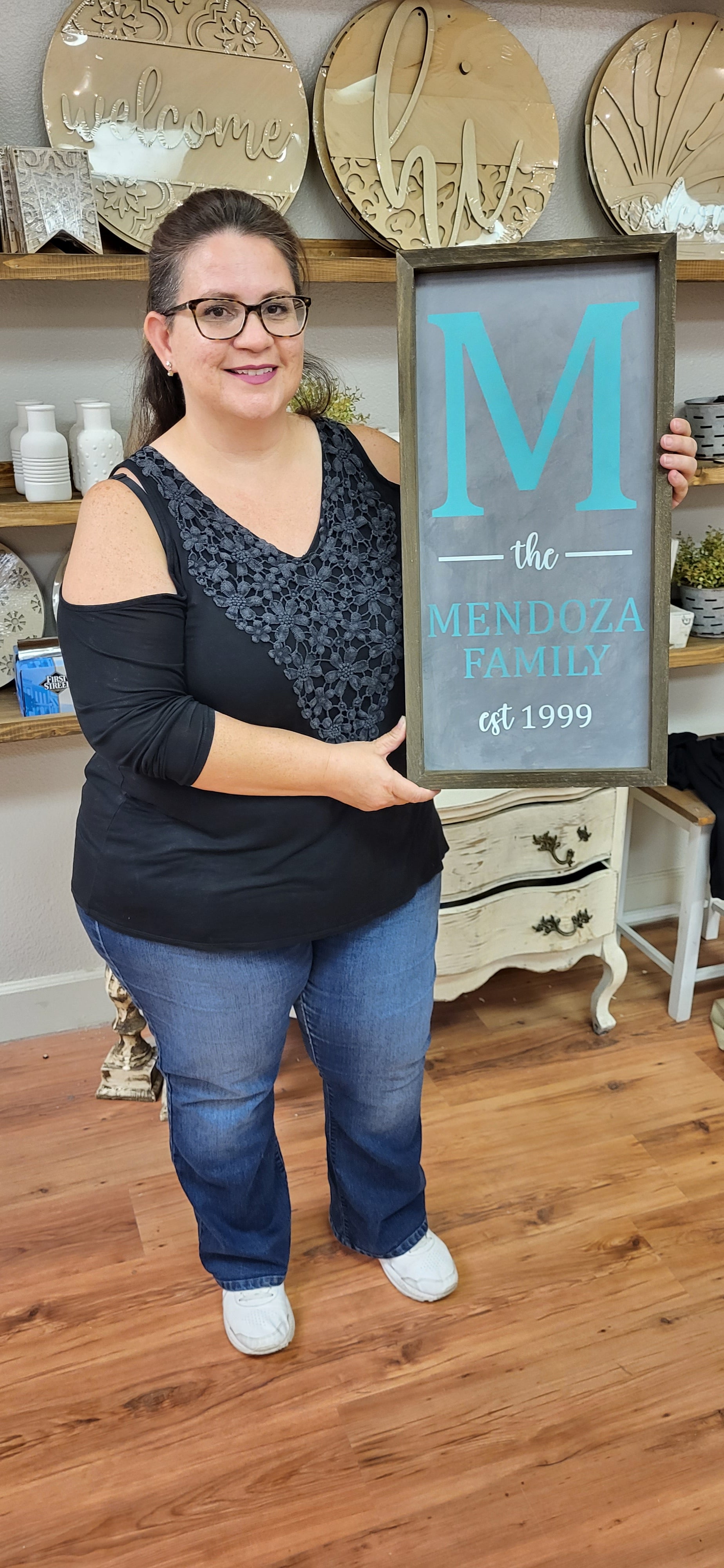 This stenciled design is perfect weddings, anniversaries, housewarmings or just as a fun décor piece for your own home! This is a 12" x 24" framed sign