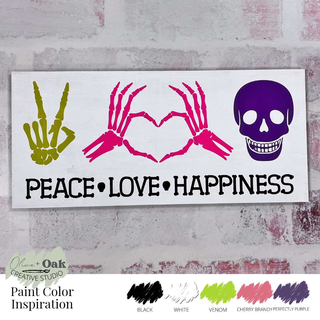 DIY Peace Love Happiness Skeleton Plank Sign
