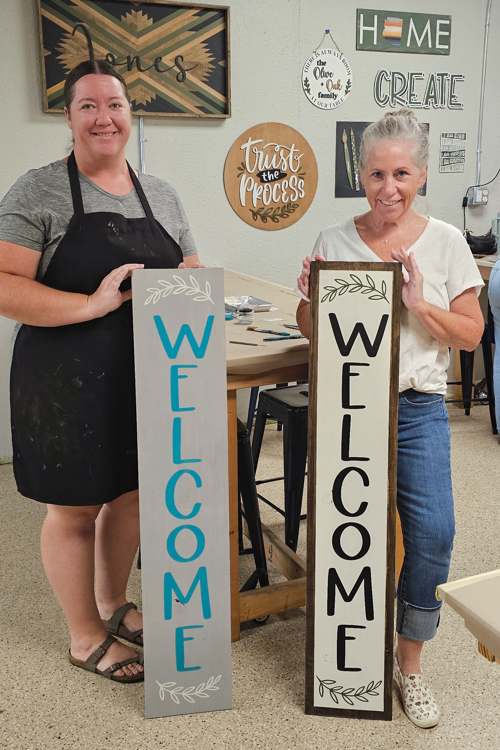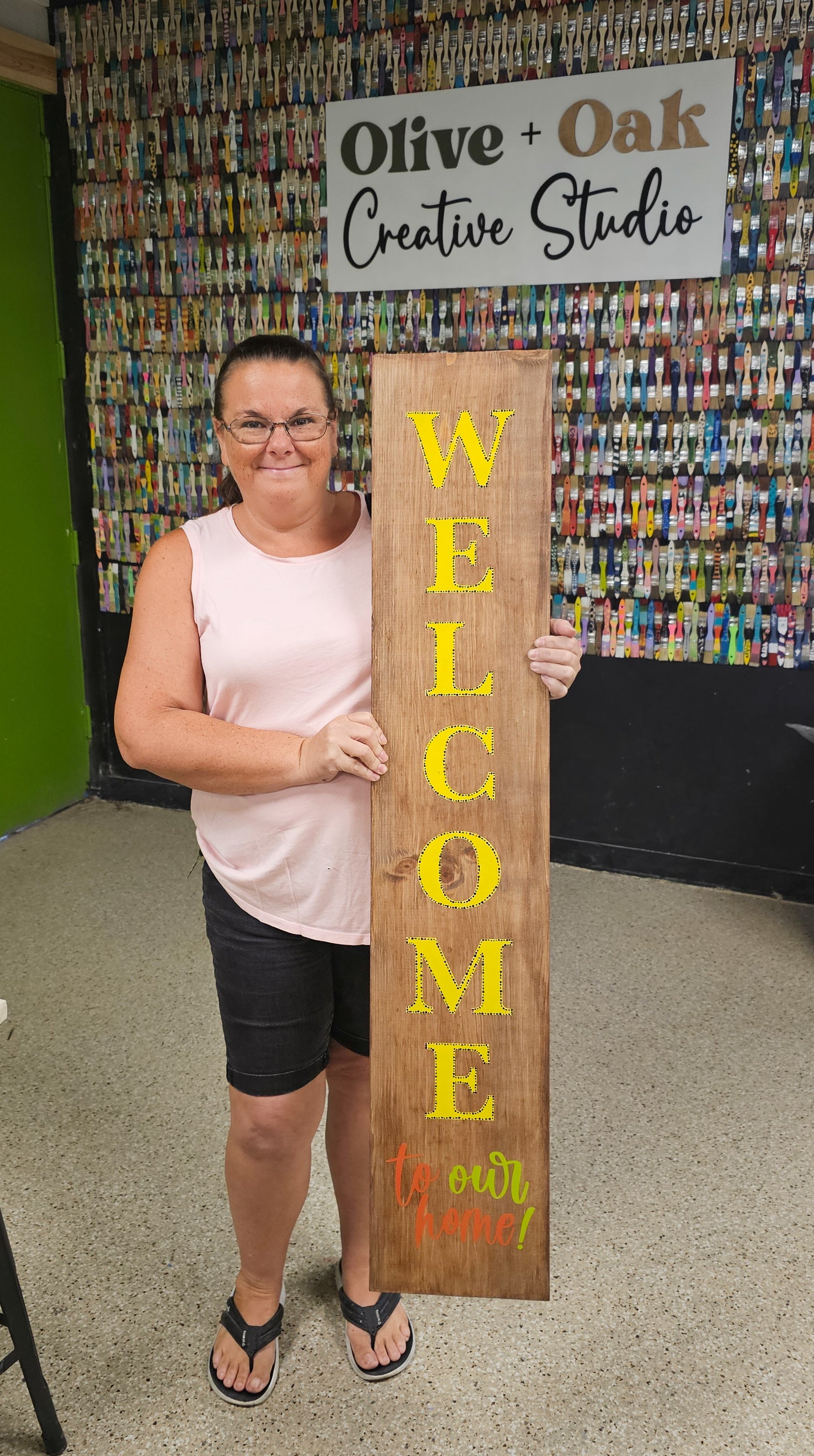 These 4-foot-tall signs are the perfect way to add personality to your front porch, entryway, or even inside your home. You’ll get to choose from our fresh new design collection (hello, farmhouse, pet-friendly, and everyday styles 😍) and of course, make it your own with your choice of background colors and paint finishes.