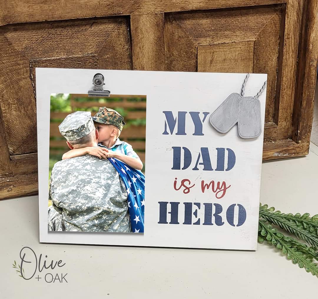 This photo frame is great way to honor YOUR hero! This project is easy to complete for kids and adults!